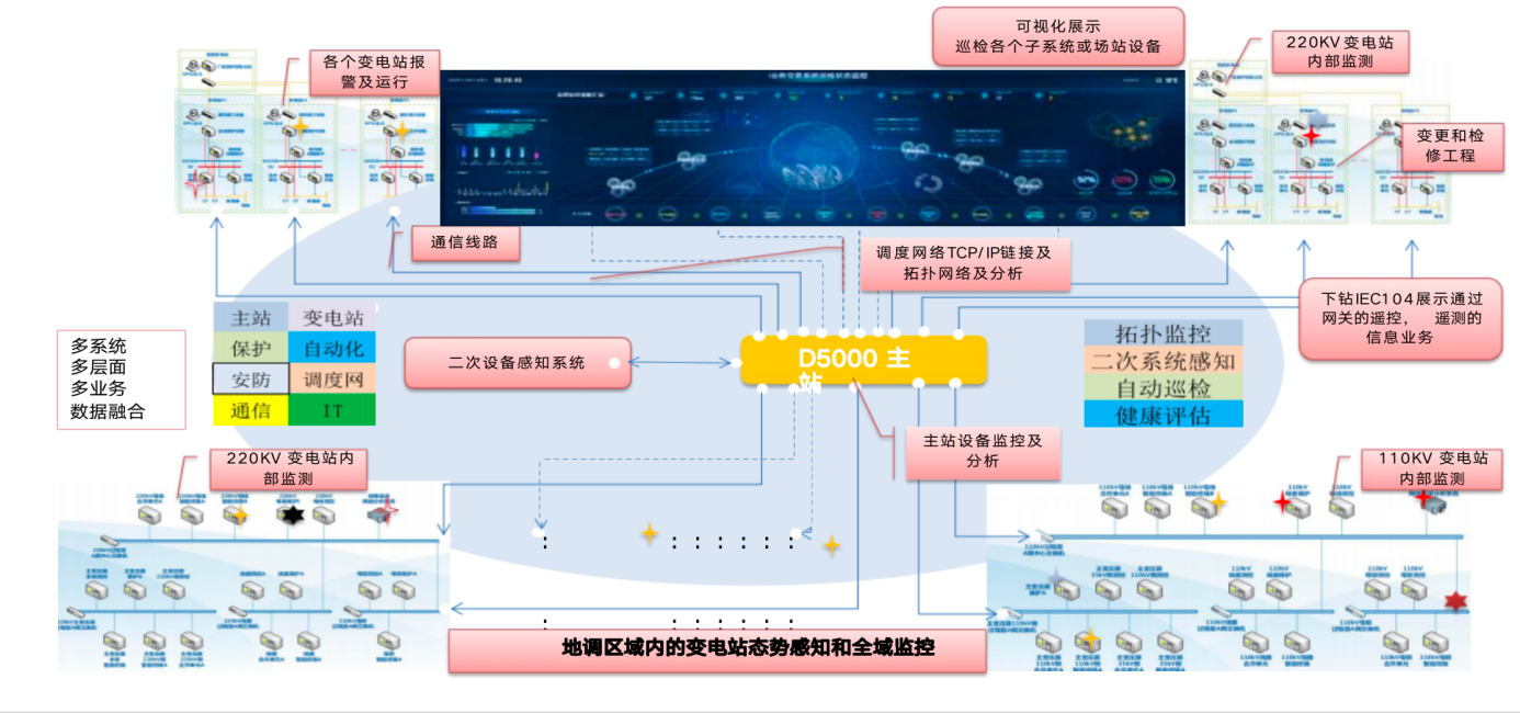 XX地調(diào)系統(tǒng)二次設(shè)備拓?fù)浼斑\(yùn)行態(tài)勢(shì)感知是對(duì)二次設(shè)備和系統(tǒng)的運(yùn)行狀態(tài)實(shí)時(shí)監(jiān)控和運(yùn)行趨勢(shì)。基于資源圖譜對(duì)系統(tǒng)的整體感知,知識(shí)圖譜和貝葉斯網(wǎng)絡(luò)AI及可視化運(yùn)維應(yīng)用技術(shù),實(shí)現(xiàn)電網(wǎng)精益化安全分析,推動(dòng)電網(wǎng)運(yùn)行智能運(yùn)維,電網(wǎng)運(yùn)維的數(shù)字化轉(zhuǎn)型,全面支撐電網(wǎng)安全優(yōu)質(zhì)運(yùn)行和調(diào)度管理精益高效運(yùn)轉(zhuǎn)。