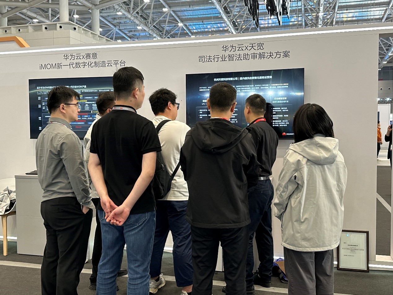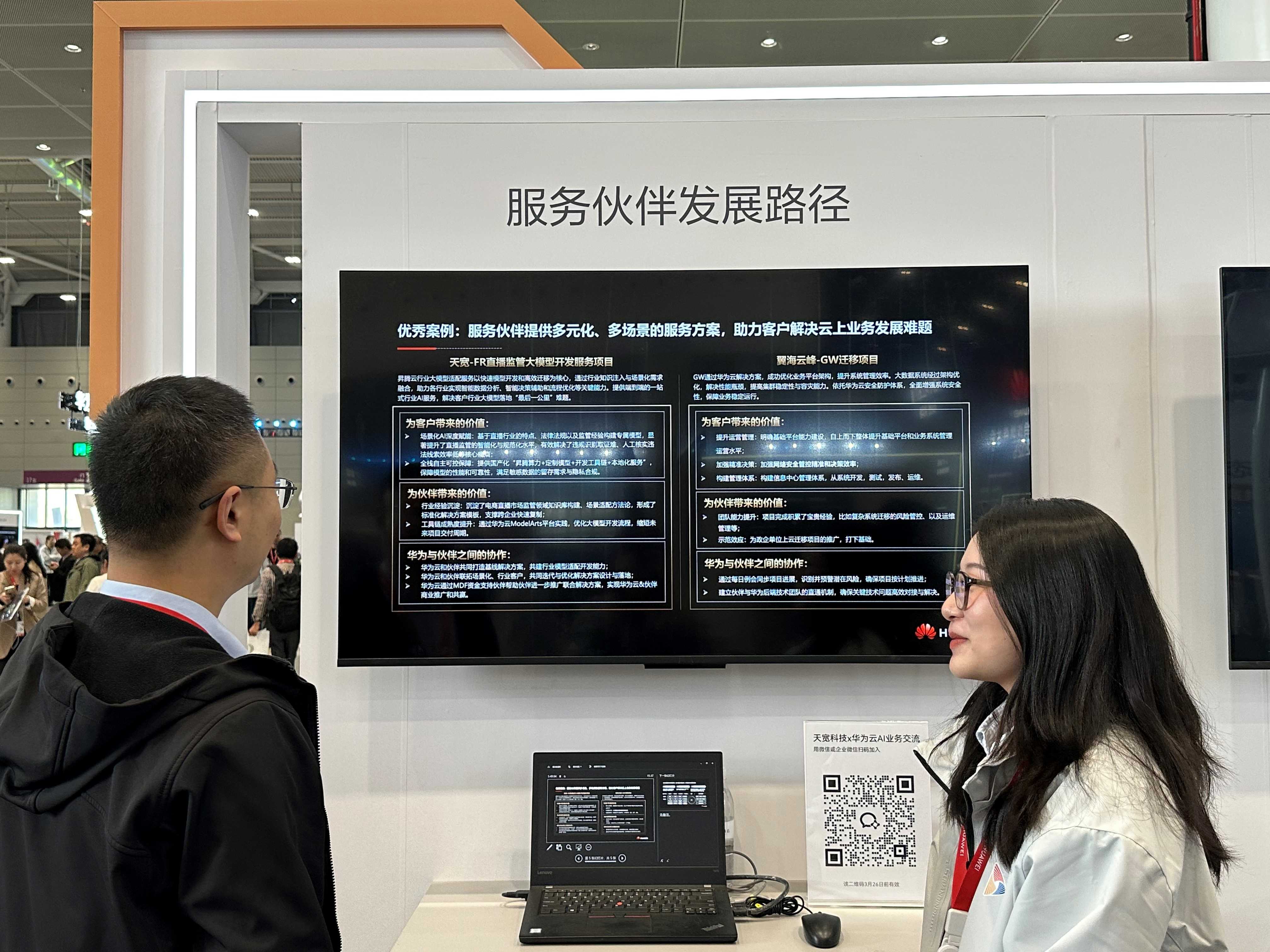 大會(huì)期間,天寬在華為云盤古大模型展區(qū)和華為云服務(wù)展臺(tái)全面展示了基于昇騰的行業(yè)大模型及創(chuàng)新解決方案,受到觀展嘉賓的熱烈關(guān)注,并與參會(huì)嘉賓就算力建設(shè)、模型遷移、AI行業(yè)模型落地等行業(yè)前沿話題進(jìn)行深入的交流與探討。